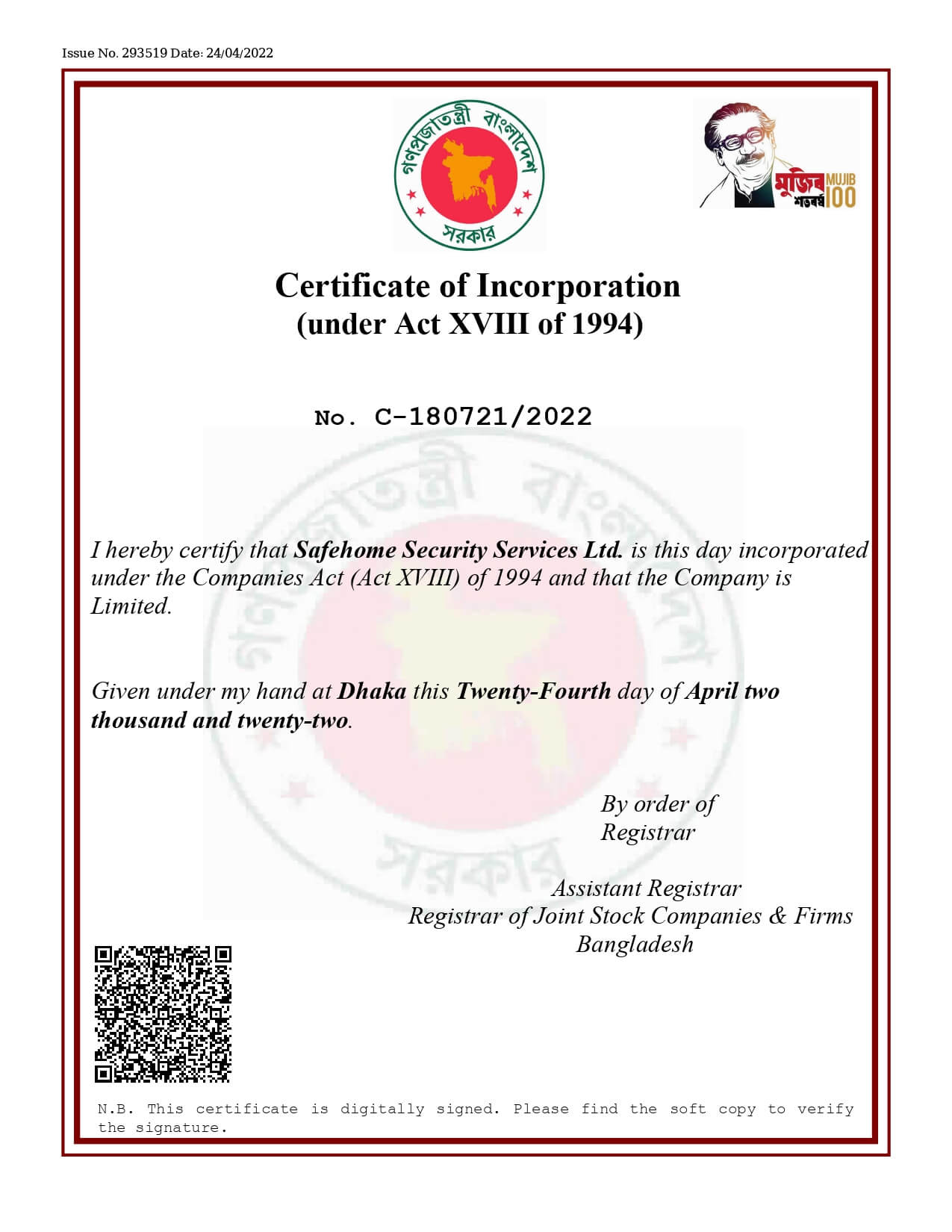 We are approved with an Incorporation Certificate from RJSC (Registrar of Joint Stock Companies And Firms).